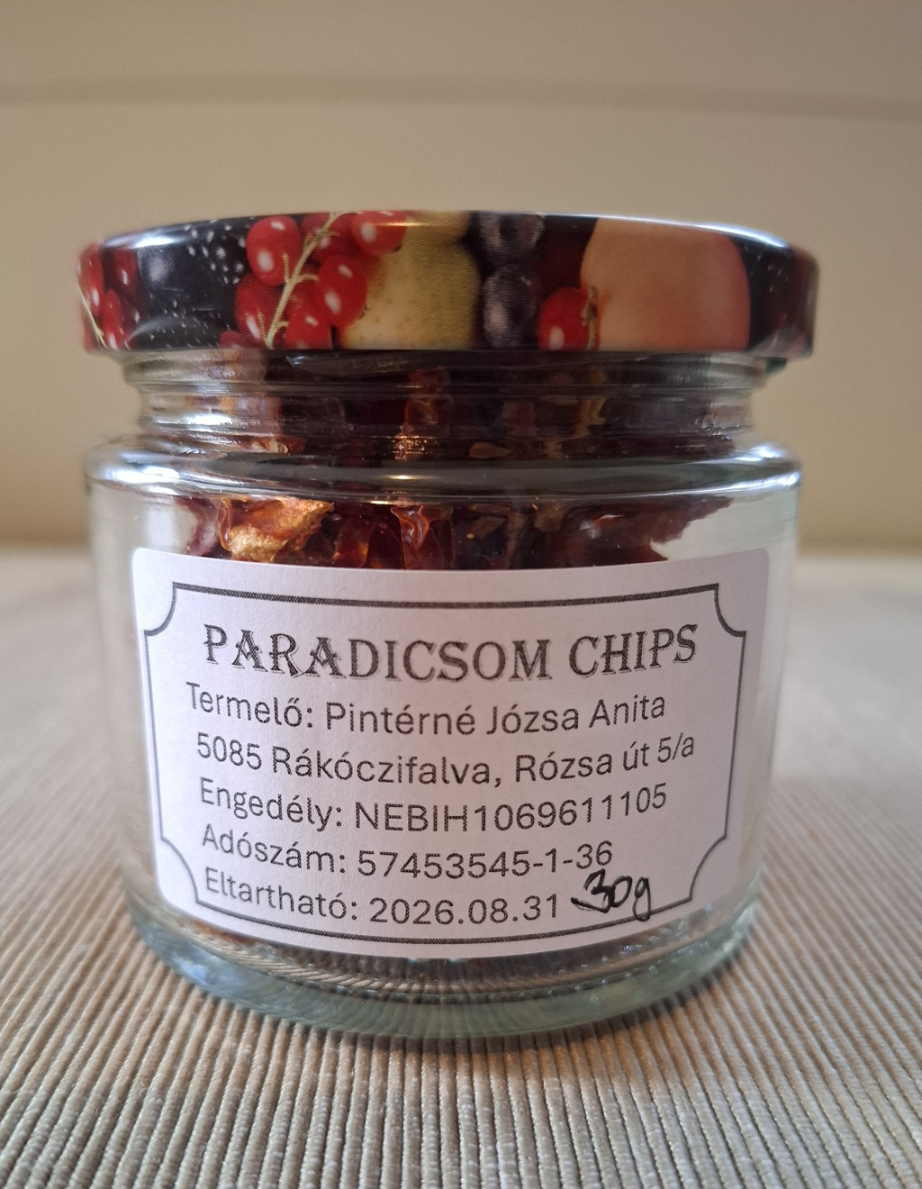 Chips házi termelésű paradicsomból. Az visszahozott üvegnek nagyon fogok örülni. :)