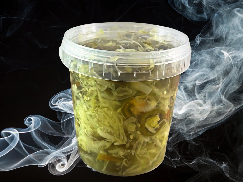 Jalapeno,vöröshagyma, káposzta, víz, só, ecet,cukor, borkén, citromsav, timsó, szemes bors, babérlevél, friss kapor, Nátrium-Benzoát