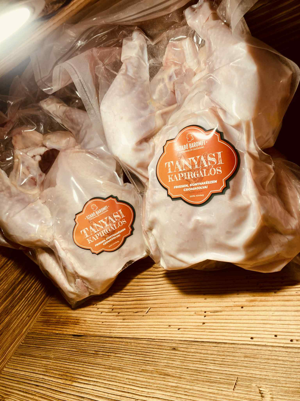 Tanyasi csirke - Rántani, Grillezéshez! Kisebb méretü tanyasi csirkénket rántani, grillezéshez ajánljuk elsö sorban, de természetesen kíváló leves vagy egyéb hús étel is készíthetö belöle. Akár egészben, akár darabolva rakjuk a grillre (vagy sütőbe), egy finom sülthús készíthető belőle a családi, baráti étkezésekhez. Az állat: Antibiotikum-mentes Adalékanyag-mentes GMO-mentes Vegyszermentes tartásból származik Egy egész csirke átlagosan 1,2 - 1,5 kg.Konyhakész, zsigerekkel együtt vákuumcsomagolva. Az ár a kiszerelés pontos súlyának függvényében változhat. Hűtve : +2 és +4 fok között tárolandó, vákuumcsomagolva 8 napig eltartható.